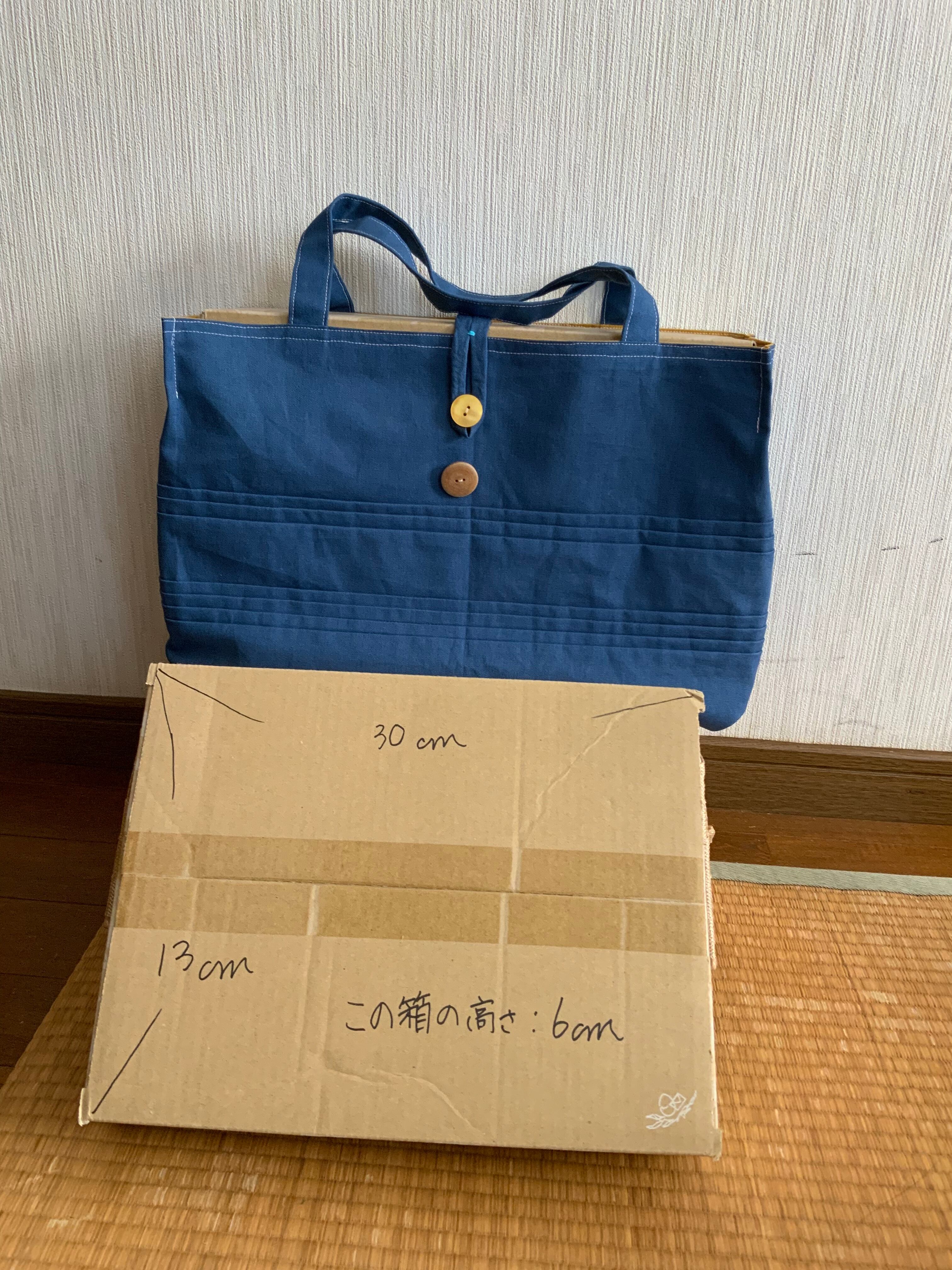 バッグ本体も大きめなので写真の段ボール(縦:13㎝ 横:30cm 高さ:6cm )も
